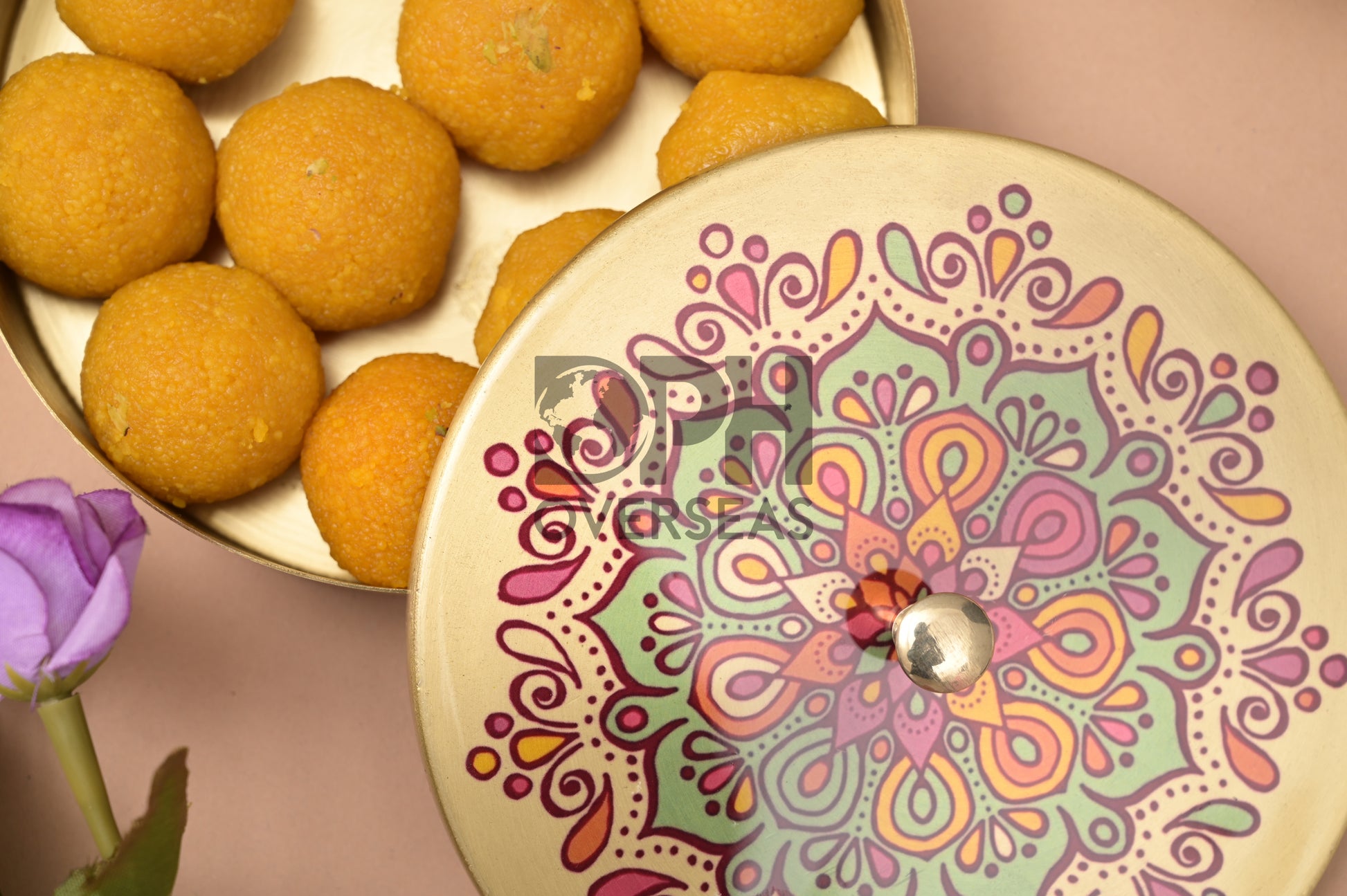 Brass Laddu Box – Mandala Design | Elegant & Traditional Storage